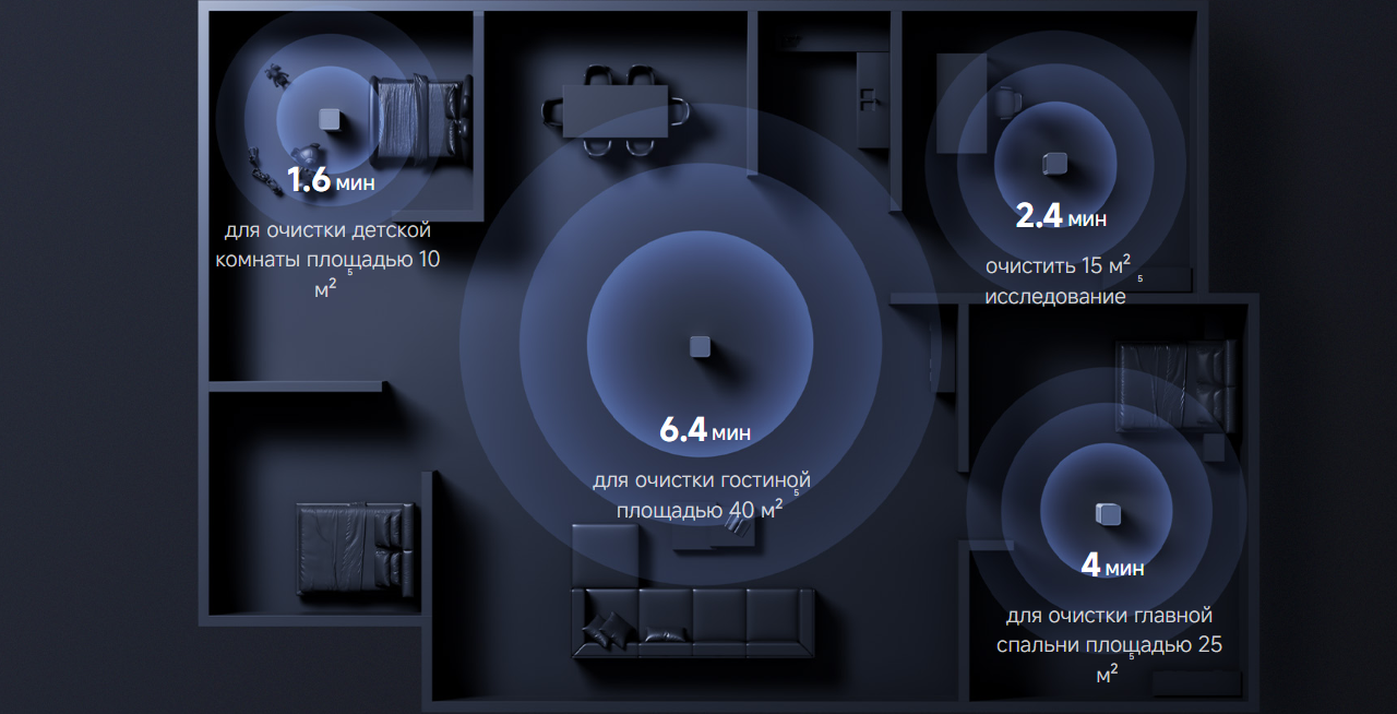 Mijia Smart Air Purifier Max рассчитан на обслуживание площади до 108 м², поэтому хорошо подходит для больших комнат и открытых пространств. Максимальный воздухообмен 240.5 м³/ч помогает устройству эффективно пропускать через систему фильтрации значительный объем воздуха, поддерживая более комфортную и чистую атмосферу в помещении.