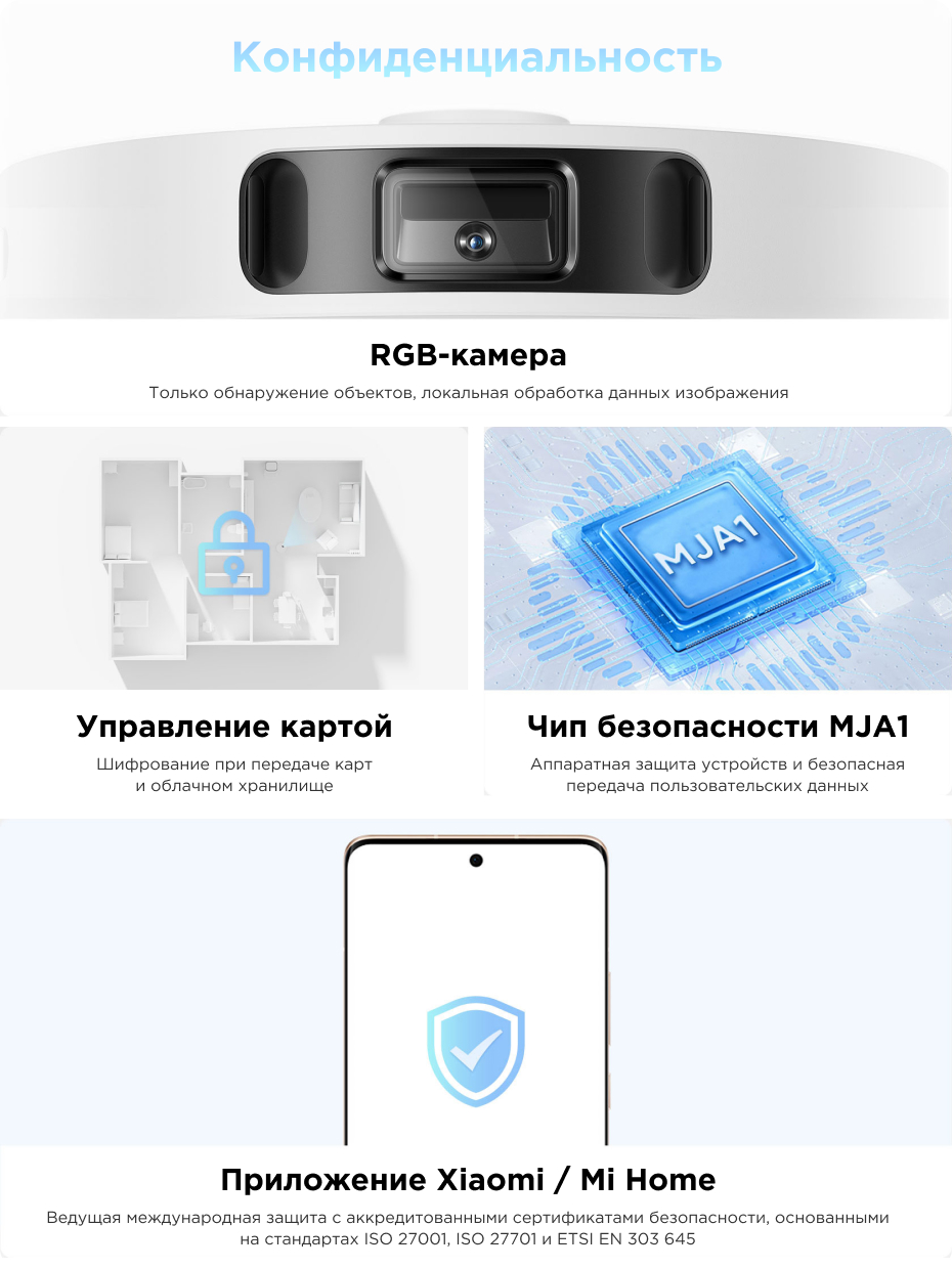 | Другие функции и возможности | автоматический забор мусора, заполнение контейнера водой, зарядная станция, полоскание мопов, автоматическое возвращение на зарядную станцию, голосовое управление через ассистентов |